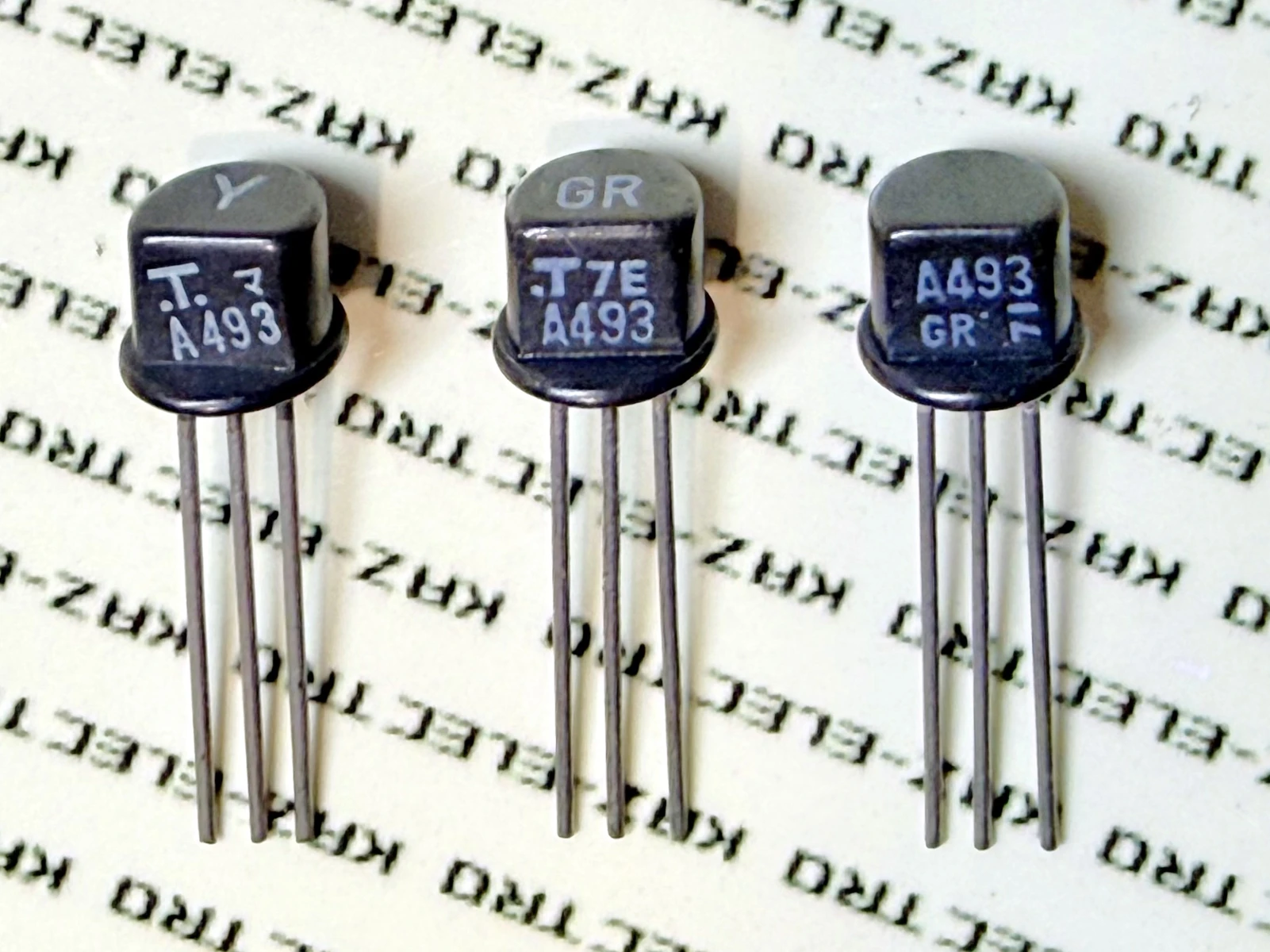 The 2SA493/2SC1000 is the direct ancestor of the 2SA970/2SC2240 — the pair that would go on to reign as Toshiba’s definitive low-noise audio transistor for more than three decades.